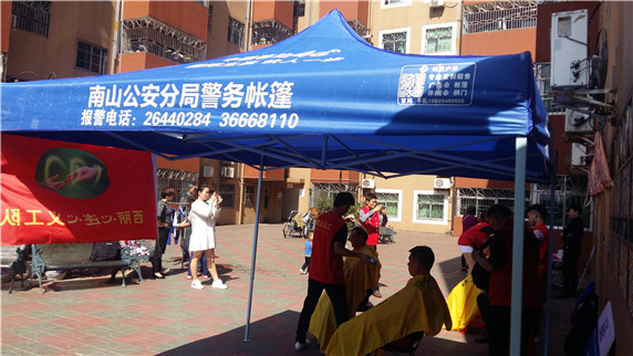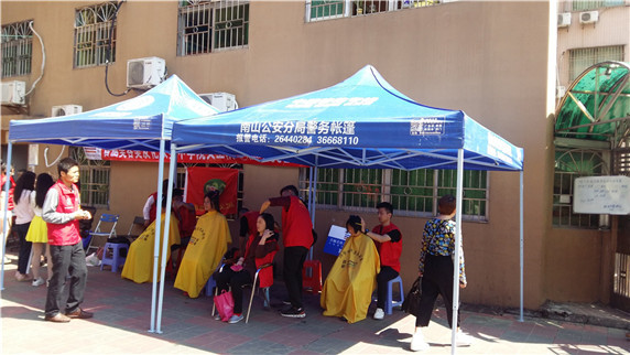 利發(fā)戶外在積極發(fā)展時不忘回報社會,公司多次參加義工進社區(qū)服務, 積極參與到義2017年4月2日 利發(fā)戶外公司組織同事帶公司自個生產(chǎn)的多頂折疊帳篷和折疊桌椅配合西麗街道的義工進雅麗閣做義剪和美甲活動,為社區(qū)居民提供免費剪頭和為女士提供免費專業(yè)修甲美甲,雅麗閣社區(qū)居民反應良好!
